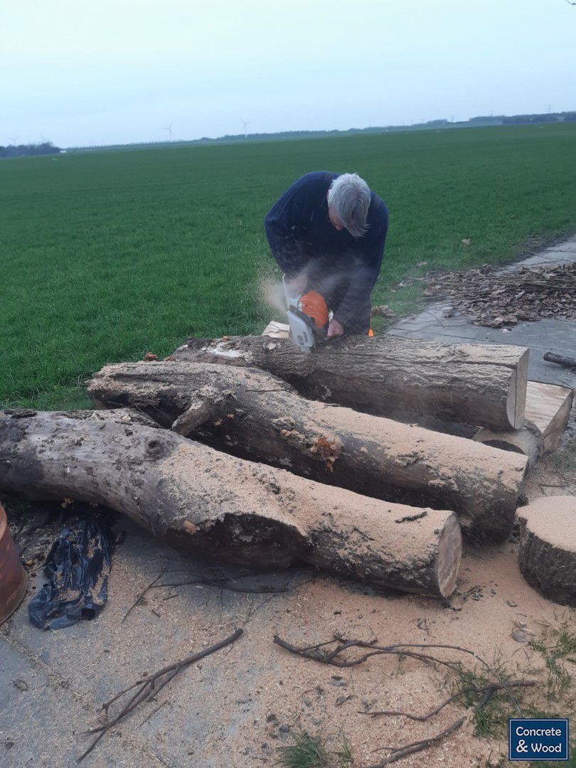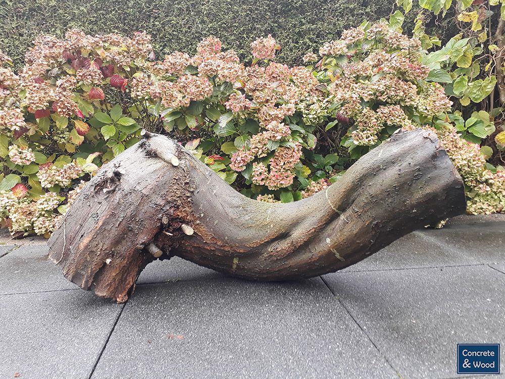 Prachtig zoals de natuur ons een kado kan geven, een beukenhouten boomstam. Deze boom heeft wel een heel bijzonder groeipatroon, gelukkig is dit niet verwerkt tot brandhout. Met deze stam begint een project. Na een tijdje drogen komt het proces pas goed op gang, de motorzaag en de frezen doen de rest.