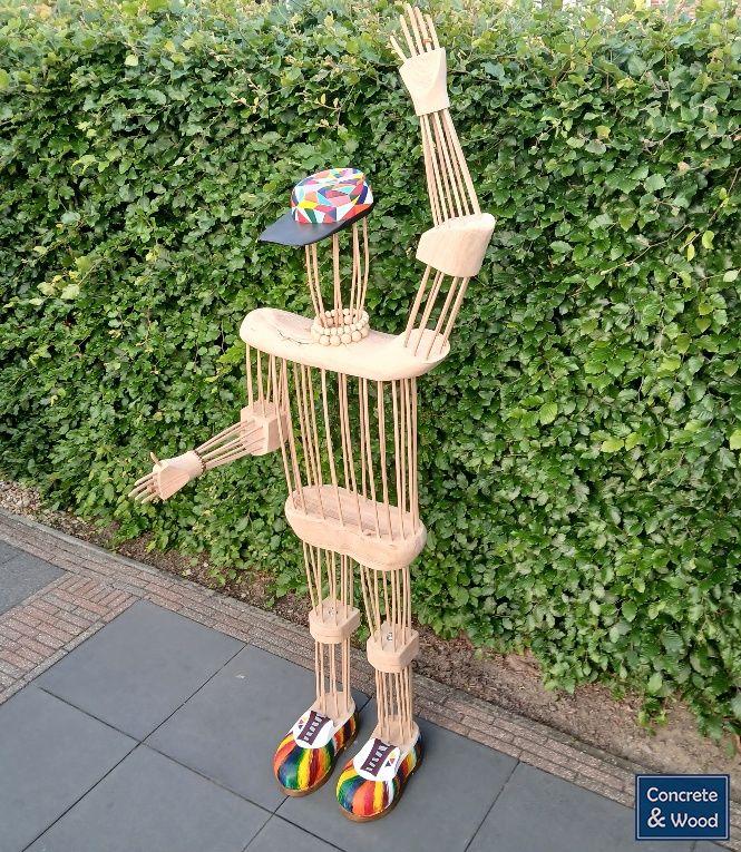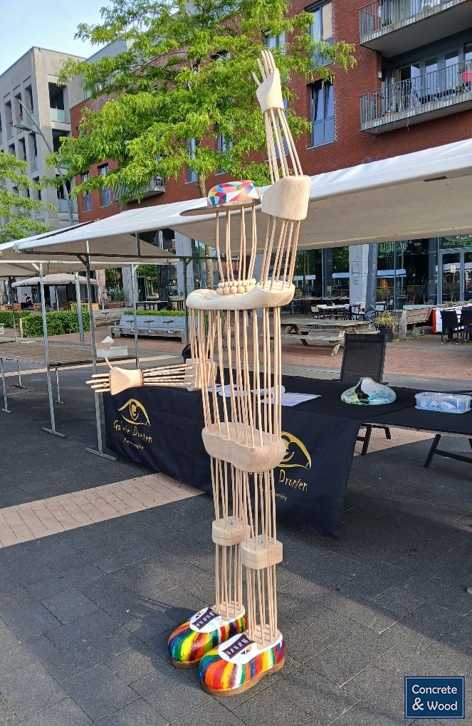 Een grote kunstwerk van staal, beton. Duurzaam, sterk met de verhoudingen conform dit design, maar het geheel 5 keer zo groot.