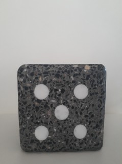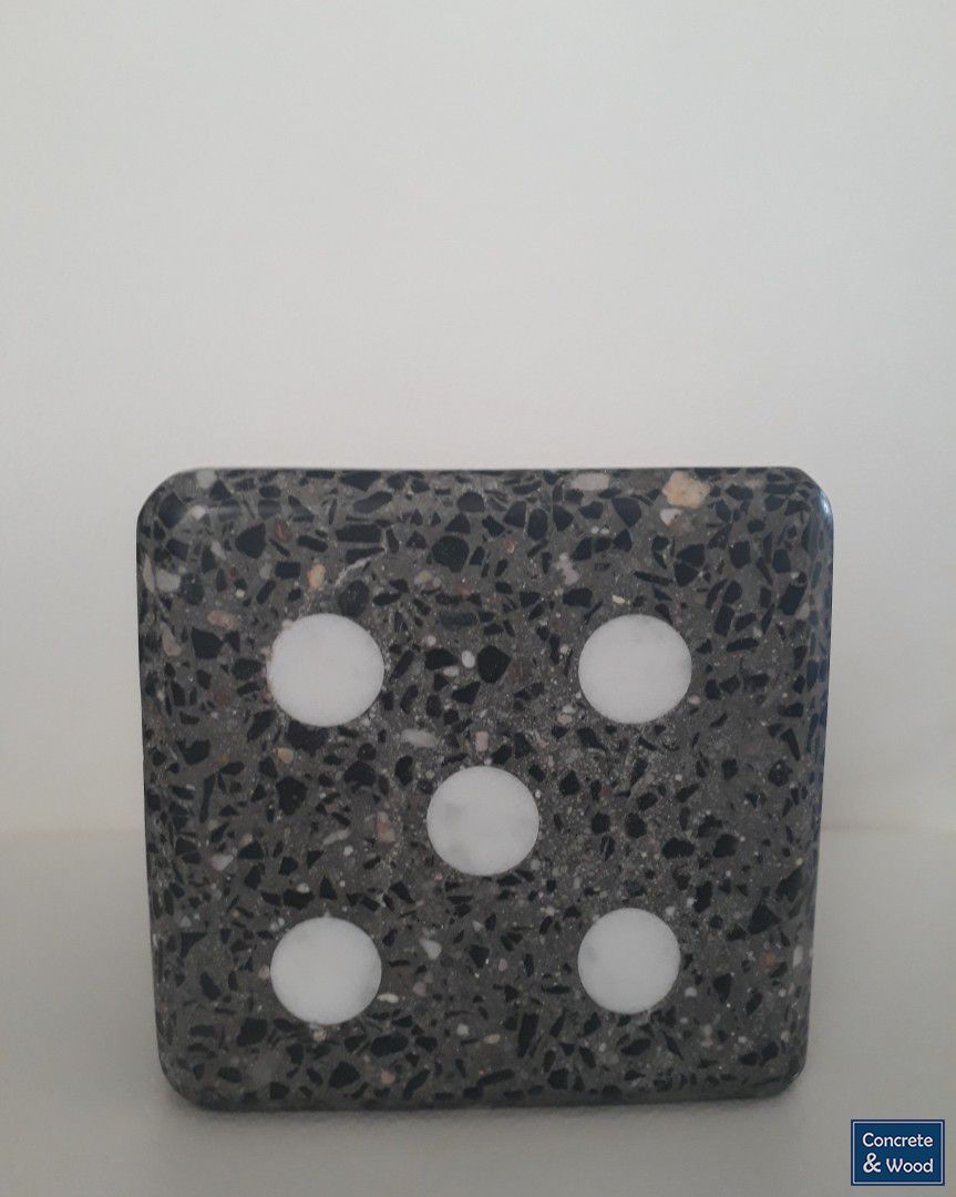 Voor de liefhebbers van beton en zoekend naar het geluksgetal, gemaakt van gebroken basalt gesteente en italiaans marmer.