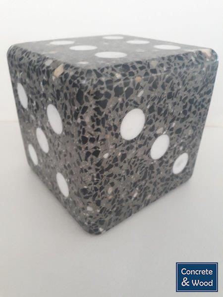 Dobbelsteen van beton, ongebruikelijk en niet bedoeld voor de stamtafel in het café.
