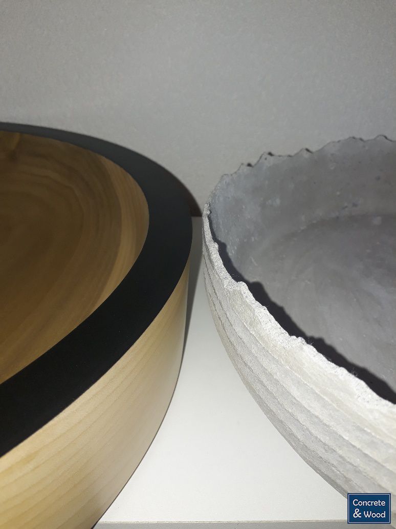 Hout of beton voor een schaal, als sieraad of in gebruik als bijvoorbeeld een fruitschaal.