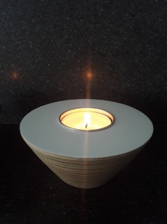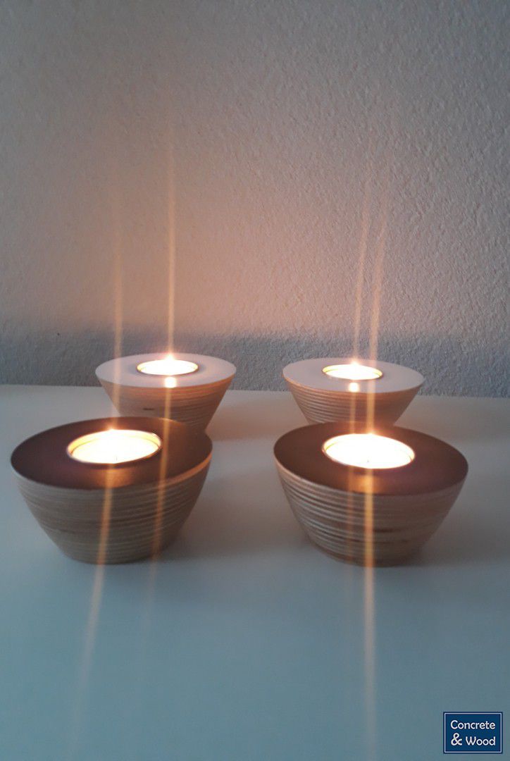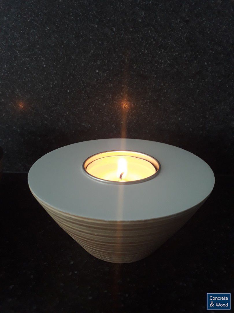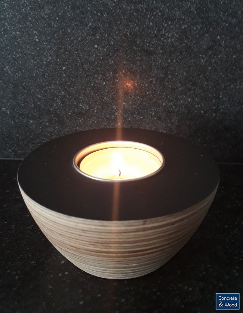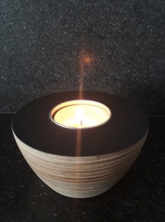 Sfeerlicht, gemaakt van een aantal lagen berken multiplex.