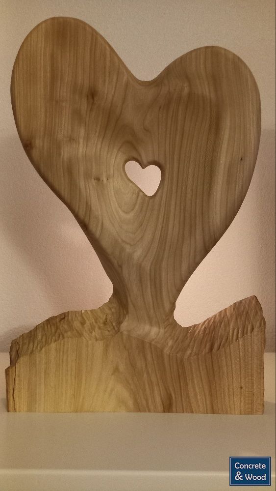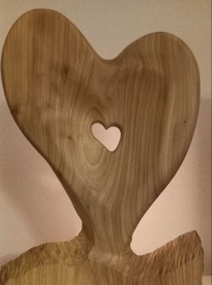 Uiteindelijk zijn er een aantal mooie platen hout overgebleven, het resultaat is te zien op bijgaande foto's. Lang genoeg drogen en daarna geeft de grote iepenboom een klein hartje!