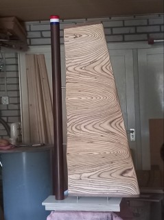 Op een zeilschip zijn de weersvoorspellingen en windrichtingen vanzelfsprekend van onmisbare waarde. Gezamenlijk met de fantasie uit het berkenhout onstaat dan bijna vanzelf een groot zeil met daarin de windrichtingen gefreesd. Meerdere lagen berkenmultiplex waren daarvoor benodigd, daarna eindeloos de frees gehanteerd, bergen zaagsel en veel stof met als resultaat.
